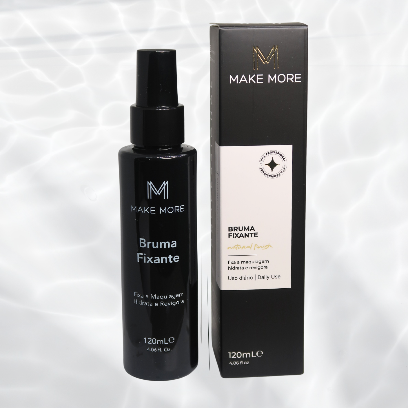 A Bruma Fixante Make More promove um acabamento uniforme e natural da maquiagem, evitando o efeito craquelado e permitindo a fixação por mais tempo. Pode ser usada tanto na pré-maquiagem para revigorar e acalmar a pele, quanto na pós-maquiagem para aumentar a fixação.