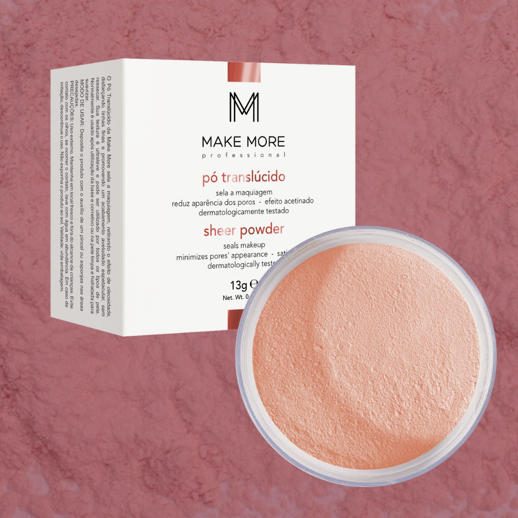 A linha de pós translúcidos da Make More possui textura super fina que sela a maquiagem, disfarça linhas finas, provendo um acabamento aveludado, sem pesar e ou ressecar, proporcionando uma maior durabilidade para maquiagem.