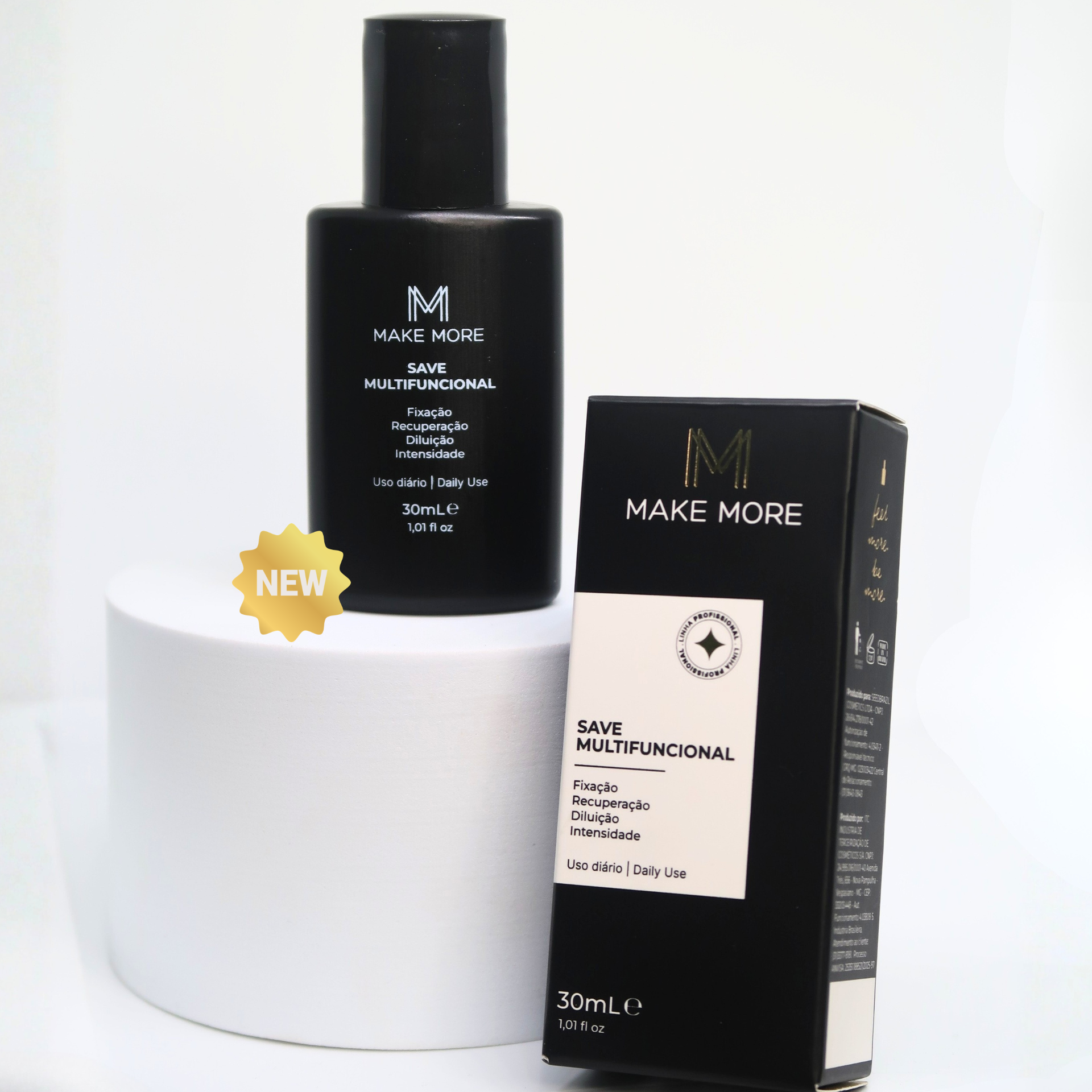 O Save Diluidor Multifuncional Make More aumenta a fixação da maquiagem, além de deixá-la à prova d’água. Com tecnologia em gotas, ele transforma, potencializa e recupera fórmulas, elevando qualquer produto a um nível profissional de performance.